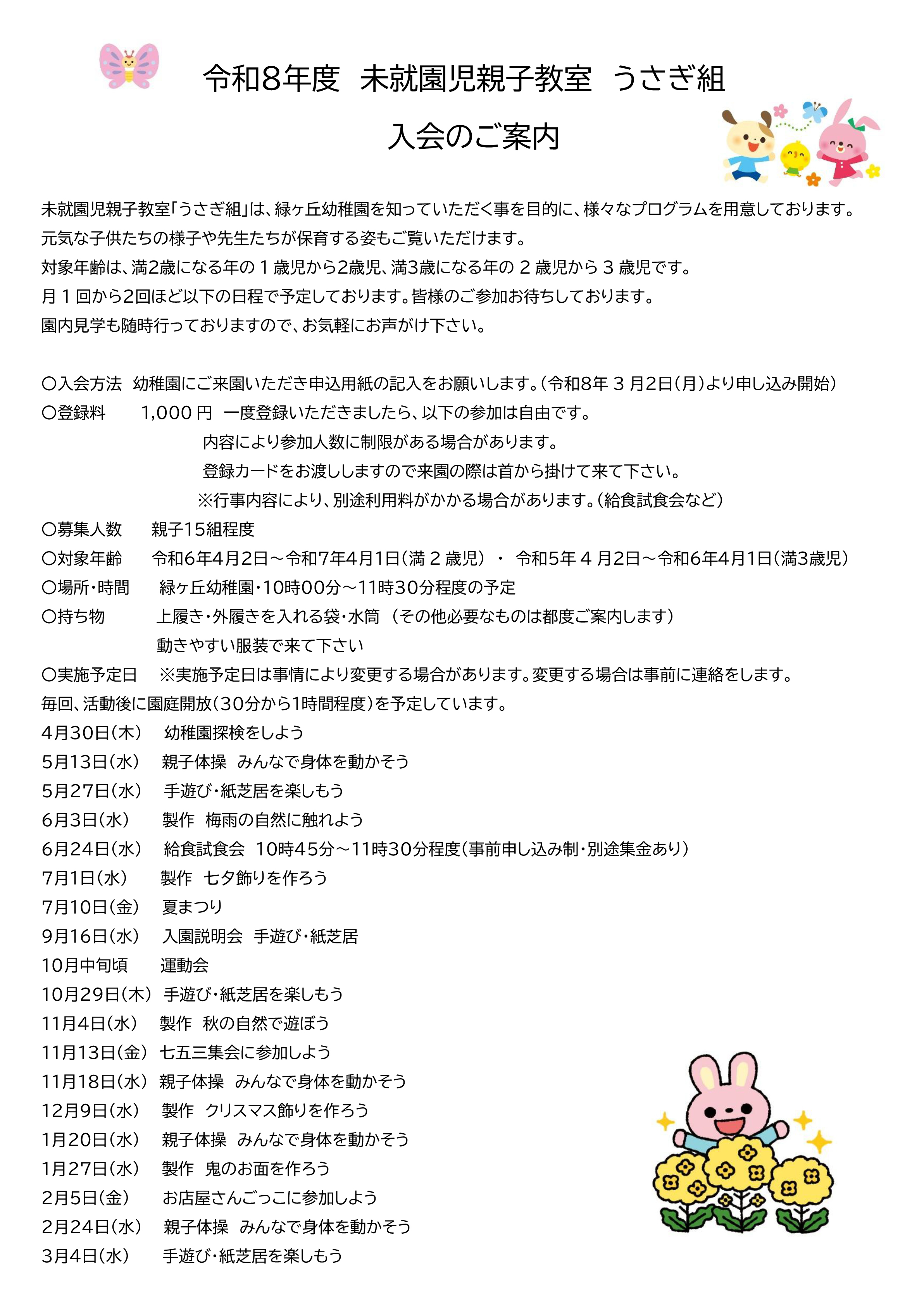 令和6年度 未就園児教室「めだか組」 入会募集要綱