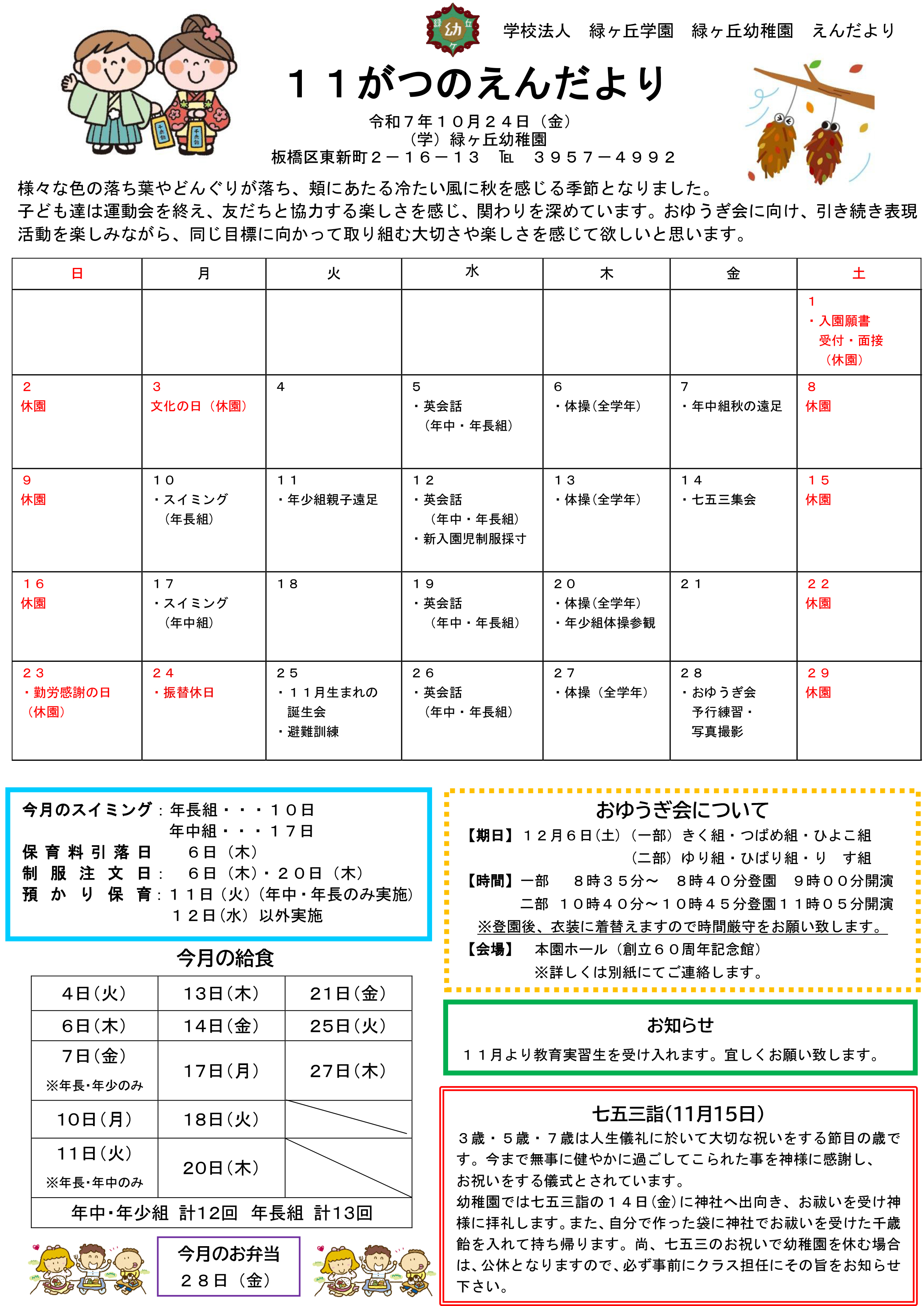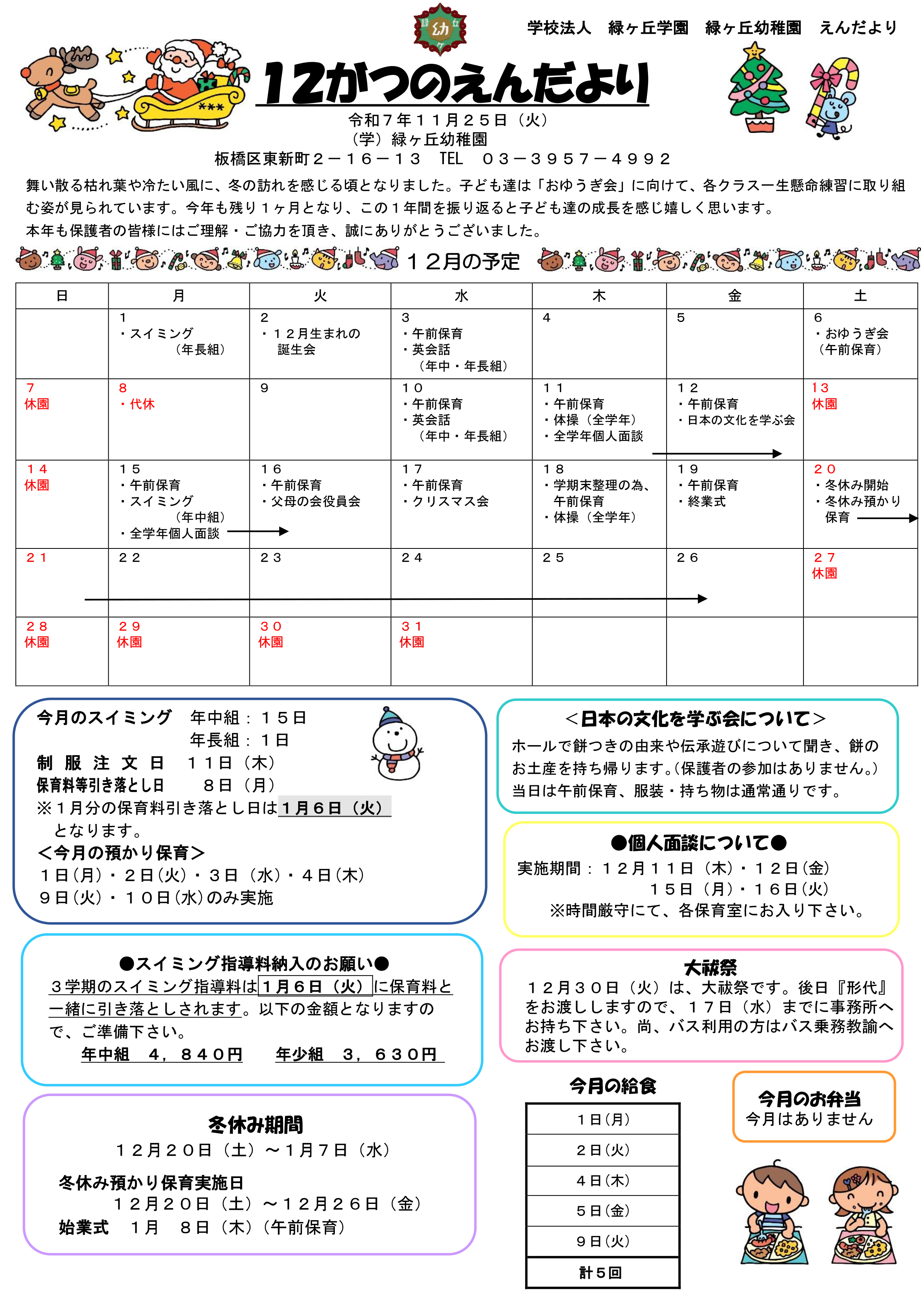 園だより 緑ヶ丘幼稚園では園内の給食室で作られたおいしい給食を用意しています。 献立表や、給食だよりを毎月配布しています。 また、園の行事や季節の風物詩を盛り込んだ園だよりも毎月発行しています。 緑ヶ丘幼稚園 令和7年11月園だより 緑ヶ丘幼稚園 令和7年11月ぱくぱくだより 緑ヶ丘幼稚園 令和7年10月 園だより 緑ヶ丘幼稚園 ぱくぱくだより 令和7年10月号 緑ヶ丘幼稚園 令和7年9月 園だより 緑ヶ丘幼稚園 ぱくぱくだより 令和7年9月号 緑ヶ丘幼稚園 令和7年7月 園だより 緑ヶ丘幼稚園 ぱくぱくだより 令和7年7月号 緑ヶ丘幼稚園 令和7年6月 園だより 緑ヶ丘幼稚園 ぱくぱくだより 令和7年6月号 緑ヶ丘幼稚園 令和7年5月 園だより 緑ヶ丘幼稚園 ぱくぱくだより 令和7年5月号 緑ヶ丘幼稚園 令和6年11月 園だより 緑ヶ丘幼稚園 ぱくぱくだより 令和6年11月号 緑ヶ丘幼稚園 令和6年10月 園だより 緑ヶ丘幼稚園 ぱくぱくだより 令和6年10月号 緑ヶ丘幼稚園 令和6年9月 園だより 緑ヶ丘幼稚園 ぱくぱくだより 令和6年9月号 緑ヶ丘幼稚園 令和6年7月 園だより 緑ヶ丘幼稚園 ぱくぱくだより 令和6年7月号 緑ヶ丘幼稚園 令和6年6月 園だより 緑ヶ丘幼稚園 ぱくぱくだより 令和6年6月号 緑ヶ丘幼稚園 令和6年5月 園だより 緑ヶ丘幼稚園 ぱくぱくだより 令和6年5月号 緑ヶ丘幼稚園 令和6年4月 園だより 緑ヶ丘幼稚園 ぱくぱくだより 令和6年4月号 緑ヶ丘幼稚園 令和5年10月 園だより 緑ヶ丘幼稚園 ぱくぱくだより 令和5年10月号 緑ヶ丘幼稚園 令和5年9月 園だより 緑ヶ丘幼稚園 ぱくぱくだより 令和5年9月号 緑ヶ丘幼稚園 令和5年7月 園だより 緑ヶ丘幼稚園 ぱくぱくだより 令和5年7月号 緑ヶ丘幼稚園 令和5年6月 園だより 緑ヶ丘幼稚園 ぱくぱくだより 令和5年6月号 緑ヶ丘幼稚園 令和5年5月 園だより 緑ヶ丘幼稚園 ぱくぱくだより 令和5年5月号 緑ヶ丘幼稚園 令和5年4月 園だより 緑ヶ丘幼稚園 ぱくぱくだより 令和5年4月号 緑ヶ丘幼稚園 令和5年2月 園だより 緑ヶ丘幼稚園 ぱくぱくだより 令和5年2月号 緑ヶ丘幼稚園 令和5年1月 園だより 緑ヶ丘幼稚園 ぱくぱくだより 令和5年1月号 緑ヶ丘幼稚園 令和4年12月 園だより 緑ヶ丘幼稚園 ぱくぱくだより 令和4年12月号 緑ヶ丘幼稚園 令和4年11月 園だより 緑ヶ丘幼稚園 ぱくぱくだより 令和4年11月号 緑ヶ丘幼稚園 令和4年10月 園だより 緑ヶ丘幼稚園 ぱくぱくだより 令和4年10月号 緑ヶ丘幼稚園 令和4年9月園だより 緑ヶ丘幼稚園 ぱくぱくだより 令和4年9月号 緑ヶ丘幼稚園 令和4年7月 園だより 緑ヶ丘幼稚園 ぱくぱくだより 令和4年7月号 緑ヶ丘幼稚園 令和4年6月 園だより 緑ヶ丘幼稚園 ぱくぱくだより 令和4年6月号 緑ヶ丘幼稚園 令和4年5月 園だより 緑ヶ丘幼稚園 ぱくぱくだより 令和4年5月号 緑ヶ丘幼稚園 令和4年4月 園だより 緑ヶ丘幼稚園 ぱくぱくだより 令和4年4月号 緑ヶ丘幼稚園 令和4年3月 園だより 緑ヶ丘幼稚園 ぱくぱくだより 令和4年3月号 緑ヶ丘幼稚園 令和4年2月 園だより 緑ヶ丘幼稚園 ぱくぱくだより 令和4年2月号 緑ヶ丘幼稚園 令和4年1月 園だより 緑ヶ丘幼稚園 ぱくぱくだより 令和4年1月号 緑ヶ丘幼稚園 令和3年12月 園だより 緑ヶ丘幼稚園 ぱくぱくだより 令和3年12月号 緑ヶ丘幼稚園 令和3年11月 園だより 緑ヶ丘幼稚園 ぱくぱくだより 令和3年11月号 緑ヶ丘幼稚園 令和3年10月 園だより 緑ヶ丘幼稚園 ぱくぱくだより 令和3年10月号 緑ヶ丘幼稚園 令和3年9月 園だより 緑ヶ丘幼稚園 ぱくぱくだより 令和3年9月号 緑ヶ丘幼稚園 令和3年7月 園だより 緑ヶ丘幼稚園 ぱくぱくだより 令和3年7月号 緑ヶ丘幼稚園 令和3年6月 園だより 緑ヶ丘幼稚園 ぱくぱくだより 令和3年6月号 緑ヶ丘幼稚園 令和3年5月 園だより 緑ヶ丘幼稚園 ぱくぱくだより 令和3年5月号 緑ヶ丘幼稚園 令和3年4月 園だより 緑ヶ丘幼稚園 ぱくぱくだより 令和3年4月号 緑ヶ丘幼稚園 令和3年3月 園だより 緑ヶ丘幼稚園 ぱくぱくだより 令和3年3月号 緑ヶ丘幼稚園 令和3年2月 園だより 緑ヶ丘幼稚園 ぱくぱくだより 令和3年2月号 緑ヶ丘幼稚園 令和3年1月 園だより 緑ヶ丘幼稚園 ぱくぱくだより 令和3年1月 緑ヶ丘幼稚園 令和2年12月 園だより 緑ヶ丘幼稚園 ぱくぱくだより 令和2年12月 緑ヶ丘幼稚園 令和2年11月 園だより 緑ヶ丘幼稚園 ぱくぱくだより 令和2年11月 緑ヶ丘幼稚園 令和2年10月 園だより 緑ヶ丘幼稚園 ぱくぱくだより 令和2年10月 緑ヶ丘幼稚園 令和2年9月 園だより 緑ヶ丘幼稚園 ぱくぱくだより 令和2年9月 緑ヶ丘幼稚園 令和2年7月 園だより 緑ヶ丘幼稚園 ぱくぱくだより 令和2年7月 緑ヶ丘幼稚園令和2年6月園だより 緑ヶ丘幼稚園ぱくぱくだより 令和2年6月号 緑ヶ丘幼稚園ぱくぱくだより 令和2年5月号 緑ヶ丘幼稚園令和2年2月園だより 緑ヶ丘幼稚園献立表 令和2年2月 緑ヶ丘幼稚園ぱくぱくだより 令和2年2月 緑ヶ丘幼稚園献立表 令和2年1月 緑ヶ丘幼稚園ぱくぱくだより 令和2年1月 緑ヶ丘幼稚園令和2年1月園だより 緑ヶ丘幼稚園12月園だより 緑ヶ丘幼稚園ぱくぱくだより令和元年12月 緑ヶ丘幼稚園献立表 令和元年12月 緑ヶ丘幼稚園11月園だより 